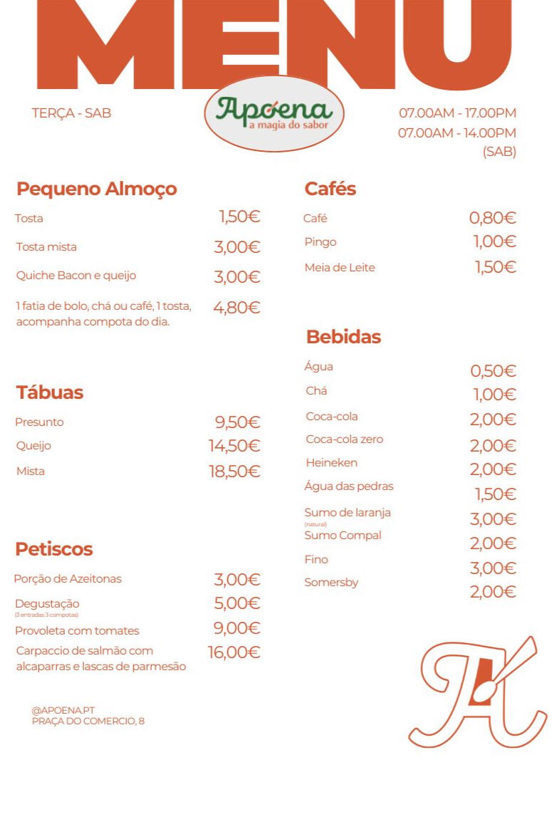 Onde cada visita se transforma numa experiência de sabor.Na Apoena, recebemo-lo de manhã cedo para o seu Pequeno Almoço revigorante ou ao longo da tarde para desfrutar de um bom café , uma bebida ou os nossos petiscos para partilhar.